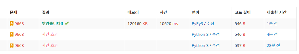 문제link: https://www.acmicpc.net/problem/9184문제에서 제시하는 함수 w(a, b, c)의 실행 결과를 반환하는 문제이다. 접근문제에서 제시된 함수 w(a, b, c)는 재귀함수 형태라 효율적이지 않다.함수 w가 a, b, c 중 하나라도 0 이하일 때는 1을 반환하고 하나라도 20 이상일 때는 w(20, 20, 20)을 반환하기 때문에, 3차원 리스트 W를 만들어 W[0][0][0] ~ [20][20][20]의 값을 미리 계산해 저장한 후 사용했다. for문을 통해 a, b, c가 적은 것부터 구해 다음 값 계산에 활용했다.a == b == c == -1인 경우 프로그램을 종료한다.코드import sysinput = sys.stdin.readlinedef w(a, b, ..